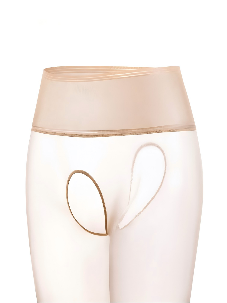 3D Open-Crotch Super High-Waist Shiny Stockings