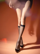 Silky-smooth mid-calf stockings that feel like a second skin! These sheer beauties come in classic black and white JK styles, perfect for adding playful flair to any outfit. Featuring gentle compression technology, they subtly shape your calves while keeping you comfortable all day. Lightweight and breathable, they're your go-to for effortless style that makes you feel fabulous.