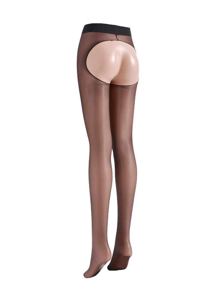 3D Open-Crotch Super High-Waist Shiny Stockings